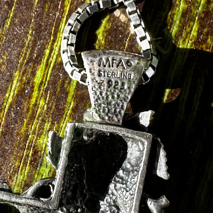 Box chain is sterling as well and measures 20" long. Weight: 25 grams.