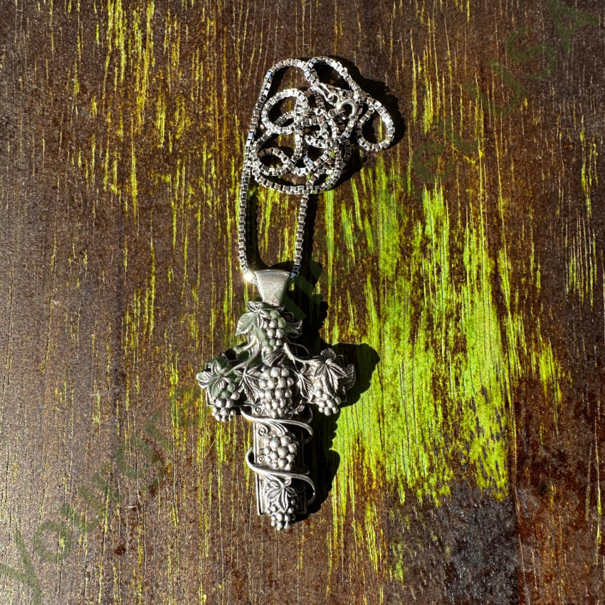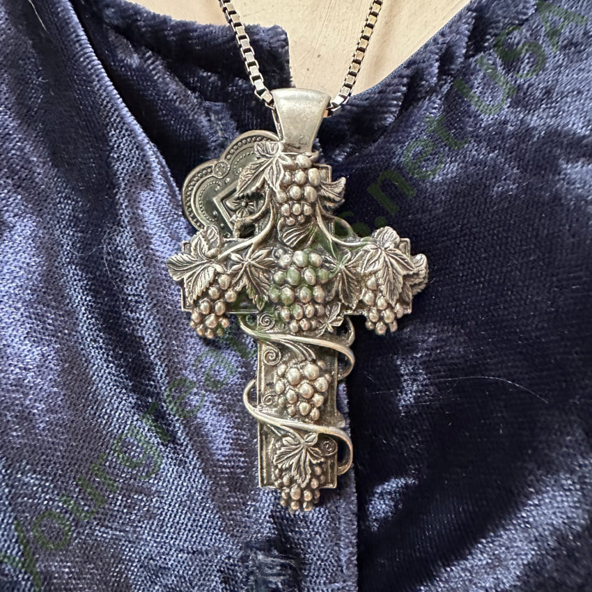 Large Sterling Silver Grapes & Vine Cross Necklace Museum of Fine Arts