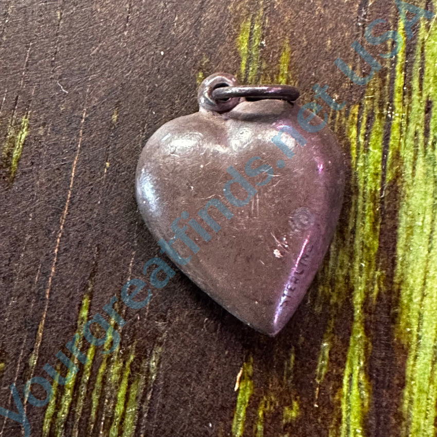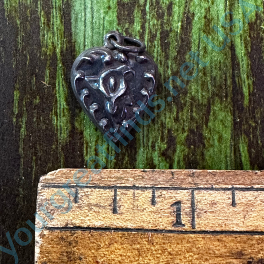 Antique Sterling Silver Puffy Heart Charm Pendant Lily