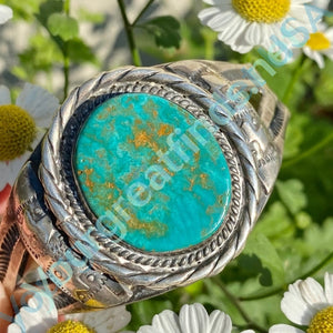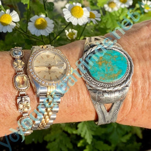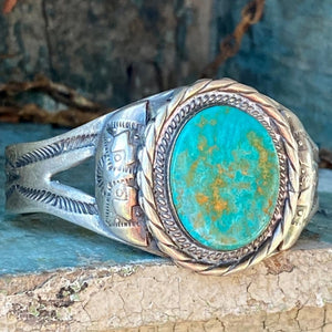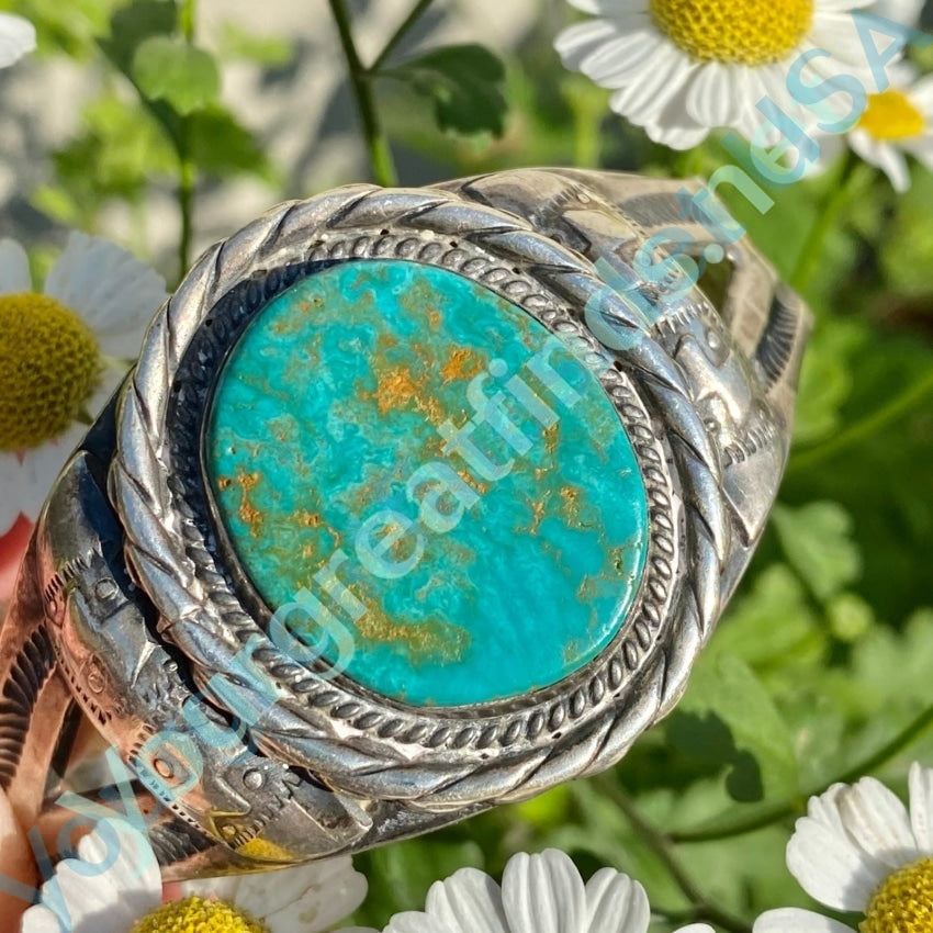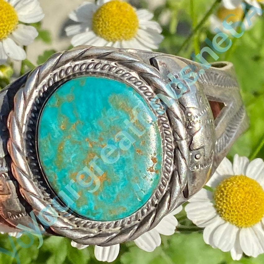 Navajo Sterling Silver Cuff Turquoise Bracelet Fred Harvey