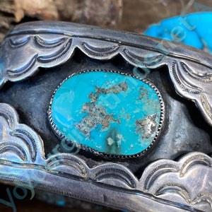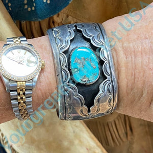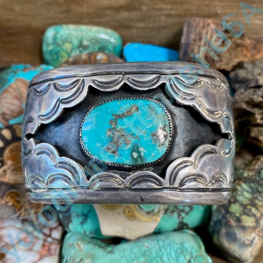 Navajo Turquoise Sterling Silver Shadowbox Bracelet Vintage Yourgreatfinds