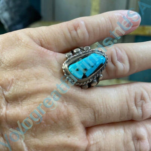Old Navajo Raindrop Ring with Carlin Mine Turquoise in Sterling Silver Size 10