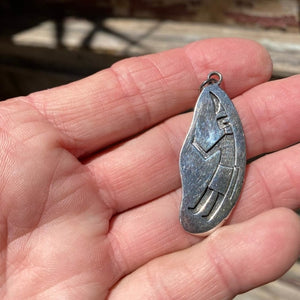 Vintage ingot formed sterling silver pendant. Hopi design was executed with the overlay technique. No hallmarks. Measures 1 5/8” long. Weight: 5.2 grams. No hallmarks. Acid tested.