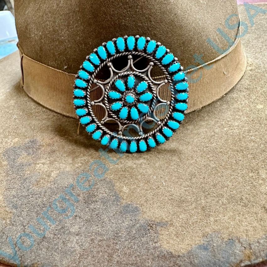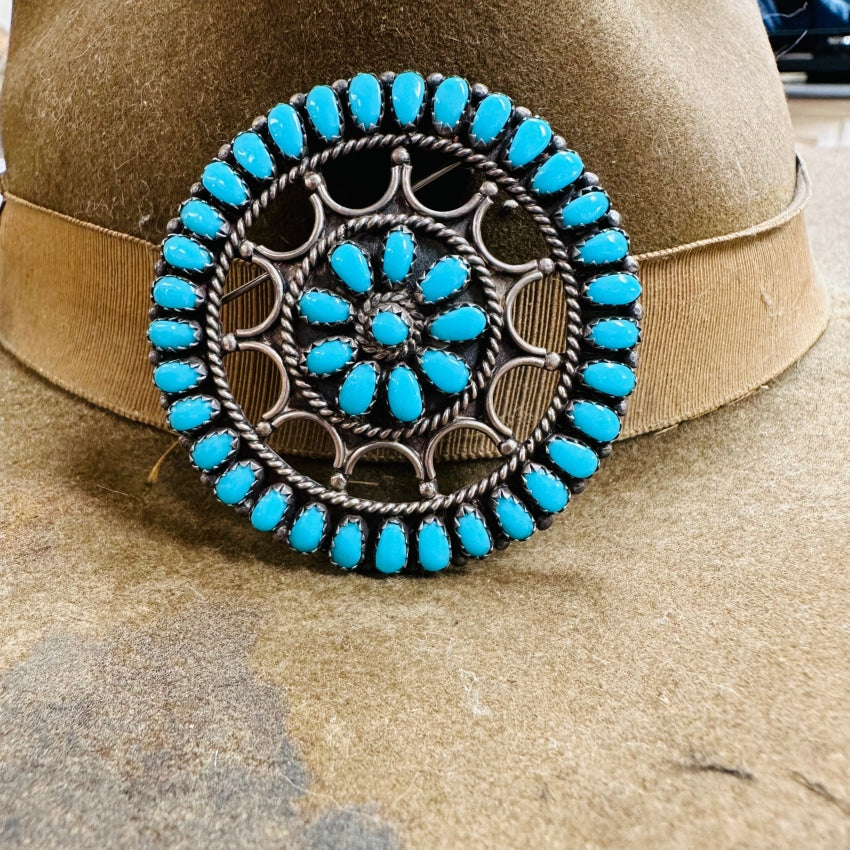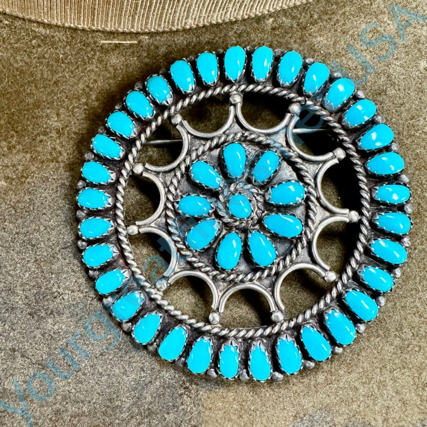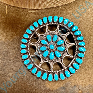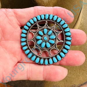 Sterling Silver Turquoise Rosette Pin Pendant Navajo Larry Moses Begay