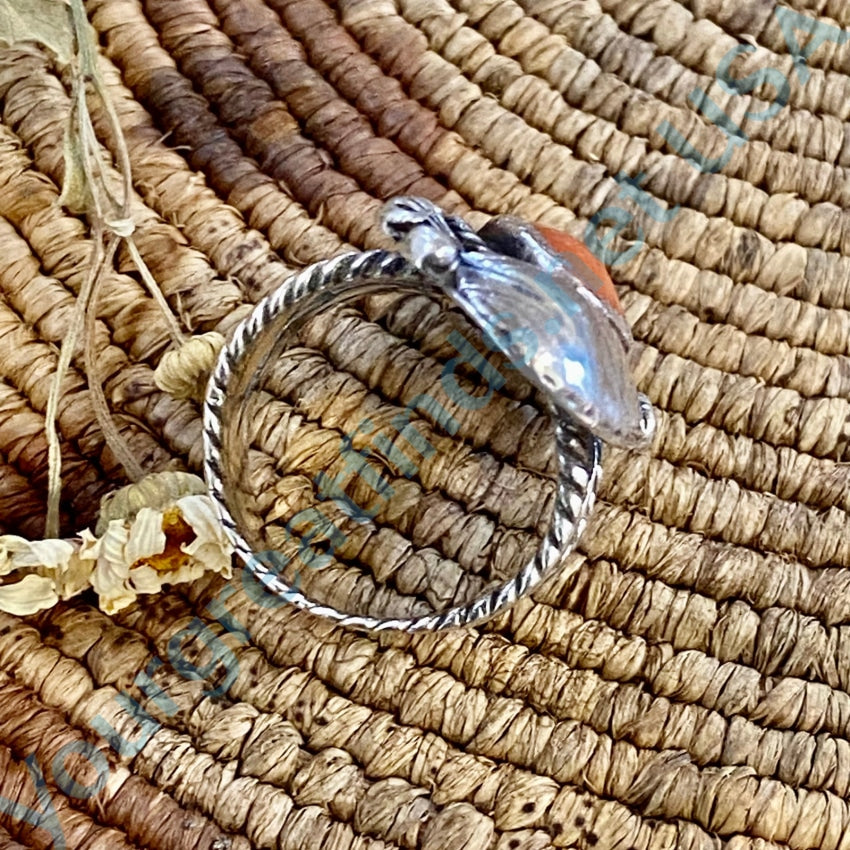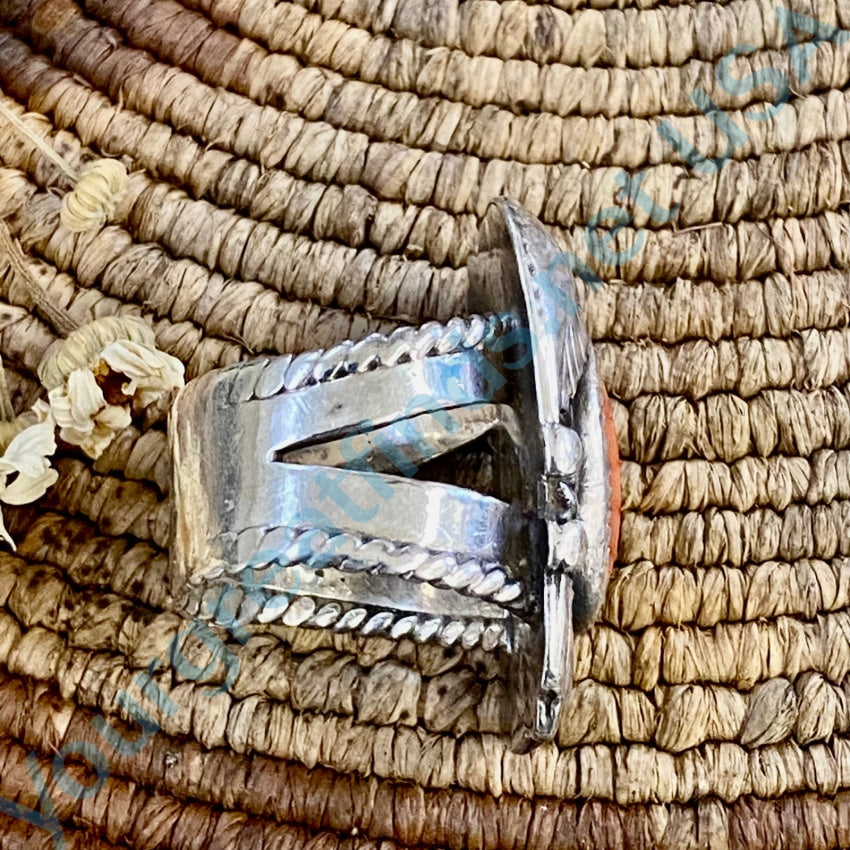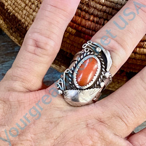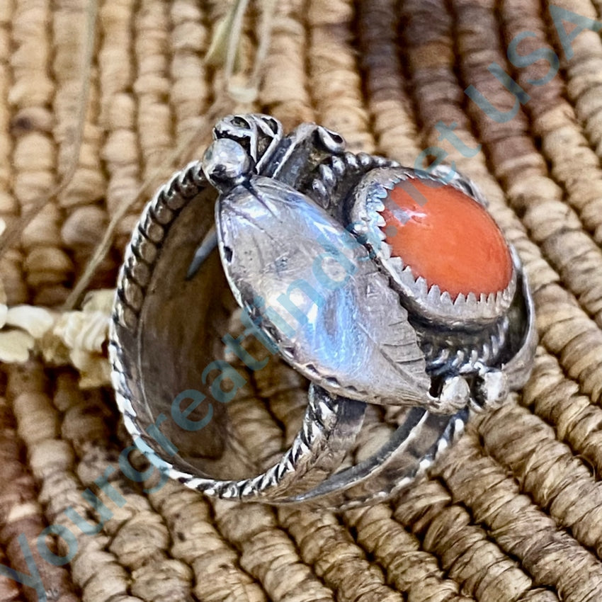 Time Worn Navajo One Feather Red Coral Ring Size 6.5