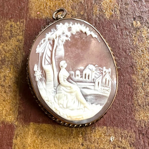 Vintage Gold Filled Carved Shell Cameo Pin Pendant