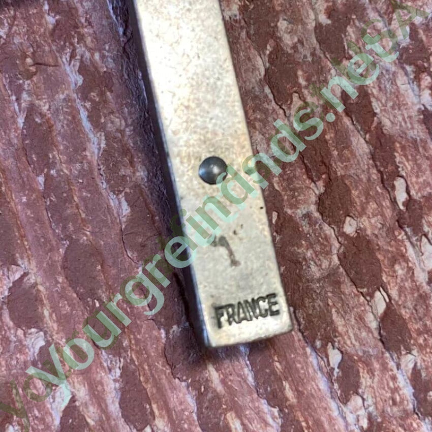 Vintage French rosary with black plastic beads. The crucifix is of ebony wood with a silver metal Christ. Marked France in 3 places. The opening of the rosary is 24" long. The front piece is 6" long and the crucifix is 1 1/2" tall. Weight is 13 grams. Has tarnish and patina, just the way that I like them.