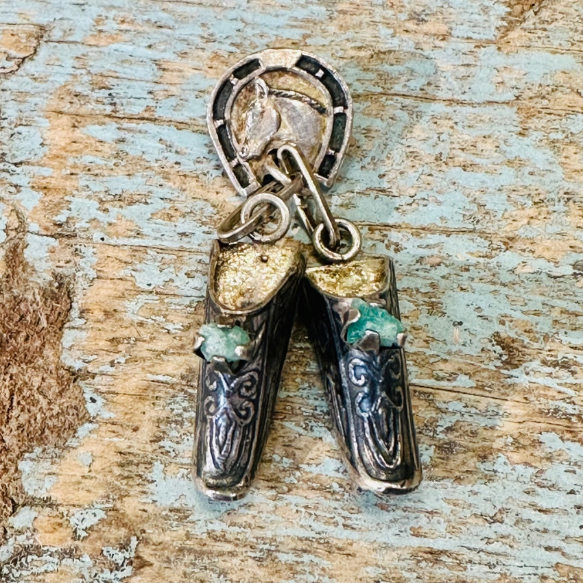Vintage Horse and Shoes Charm Pin Chrysoprase