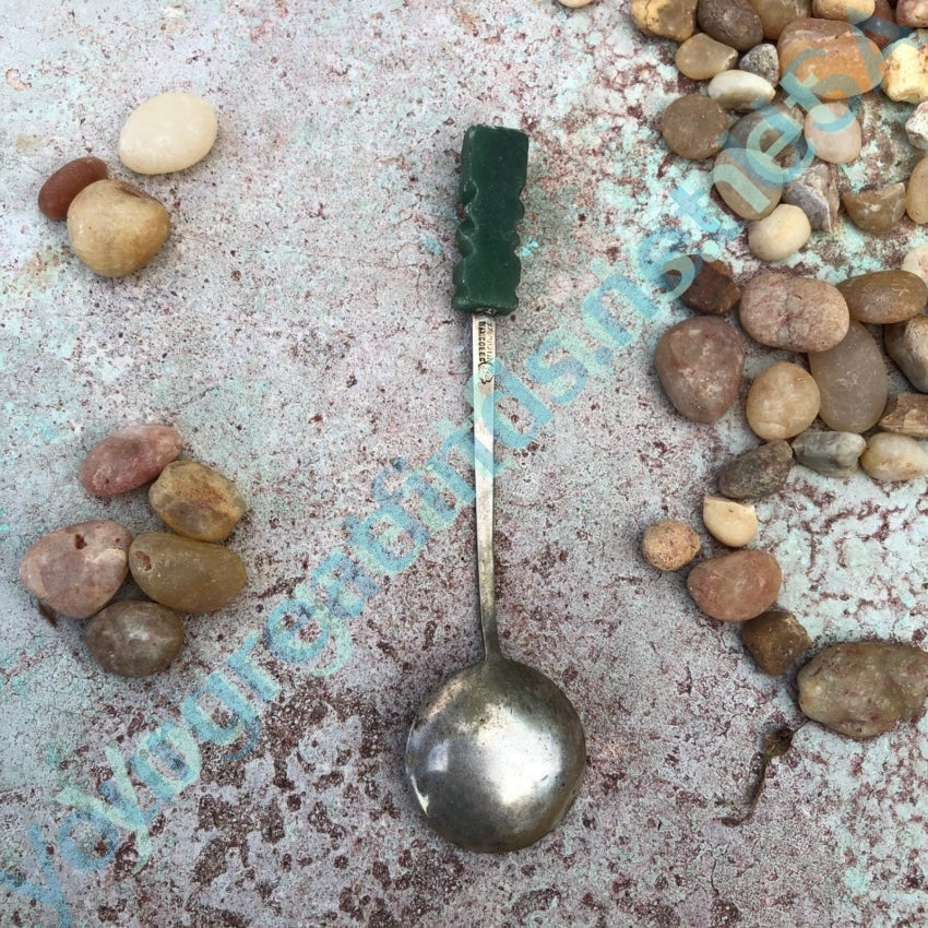 Vintage Mexican Collector Spoon with Carved Jade Handle Sterling Silver