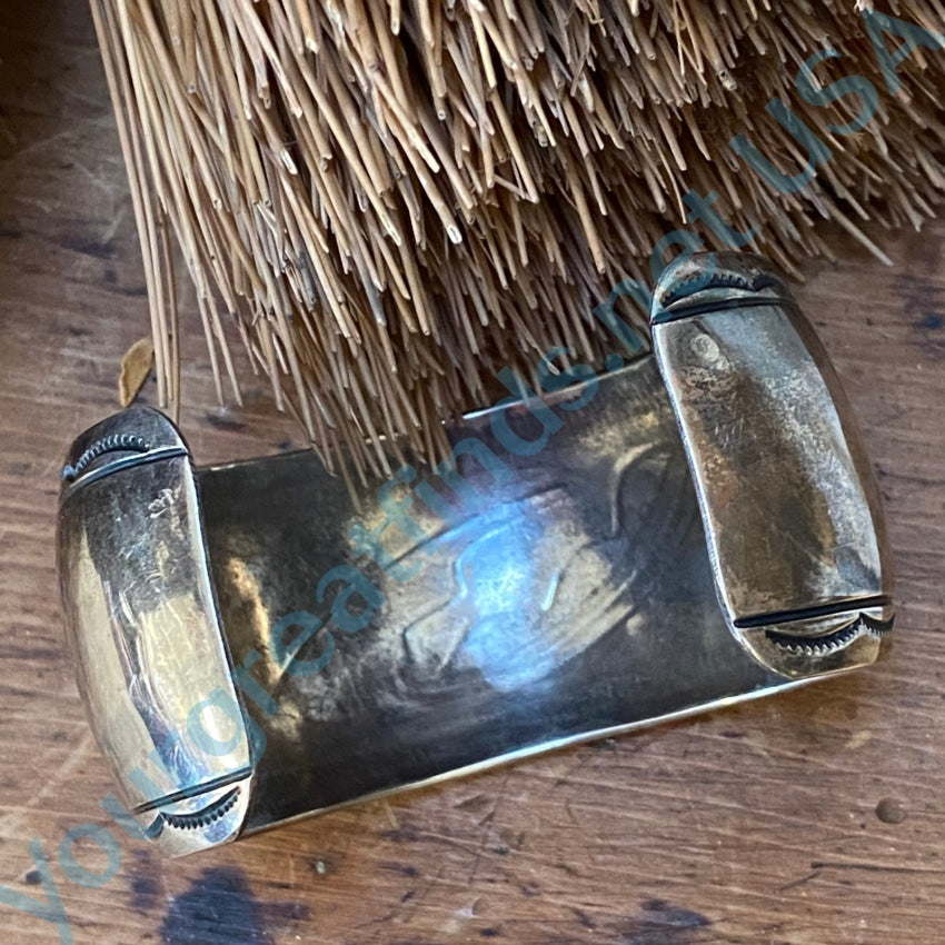 Interior is convex. It measures 5” inside plus the opening of 1 3/8”. It is 1 1/4” wide. Weight: 58.6 grams. No hallmarks, so I don’t know if it is Hopi or Navajo.