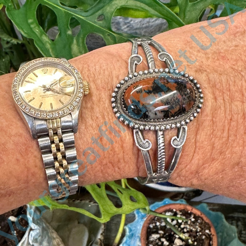 Vintage Navajo Petrified Wood Sterling Silver Bracelet Fred Harvey