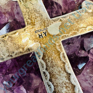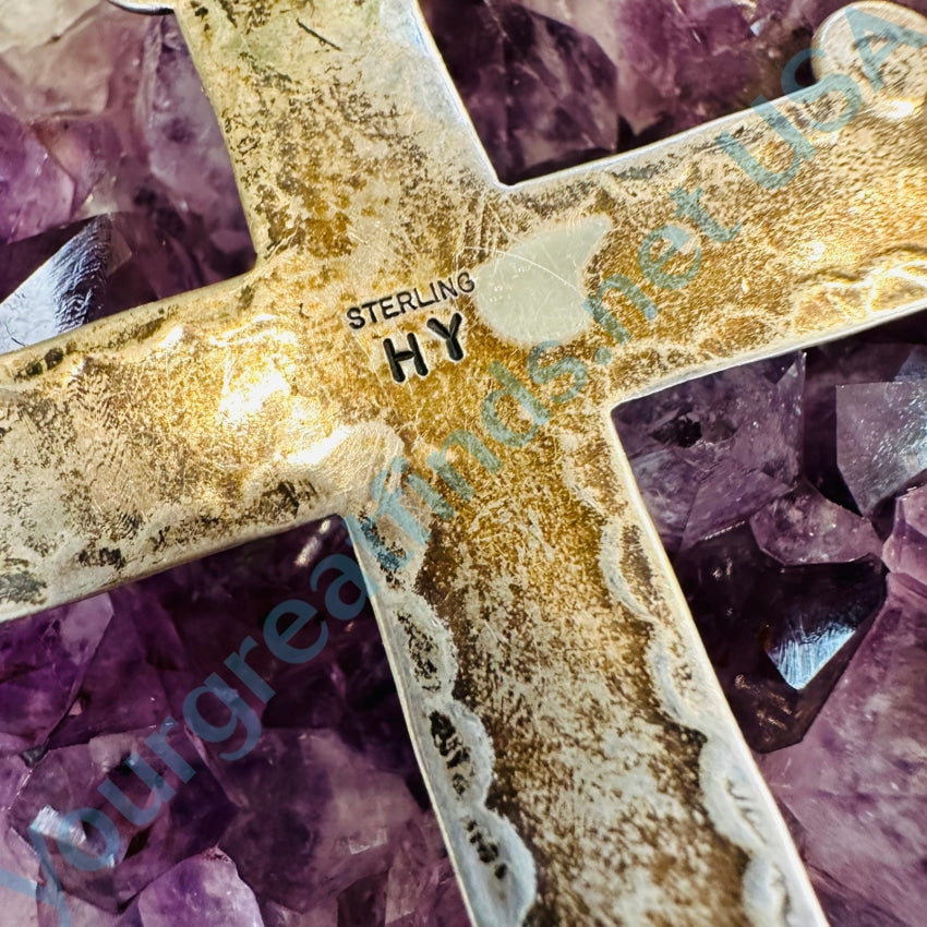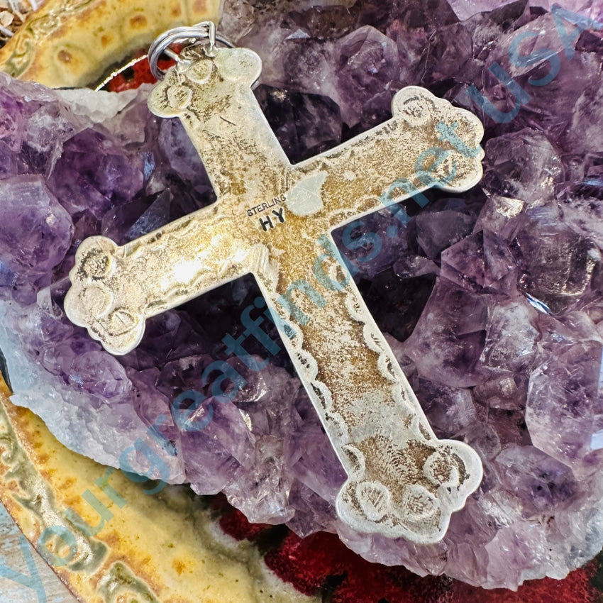 Vintage Navajo Stamped Sterling Silver Gemstone Large Cross Pendant