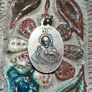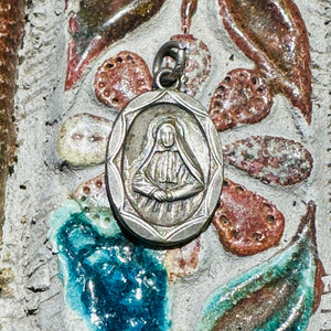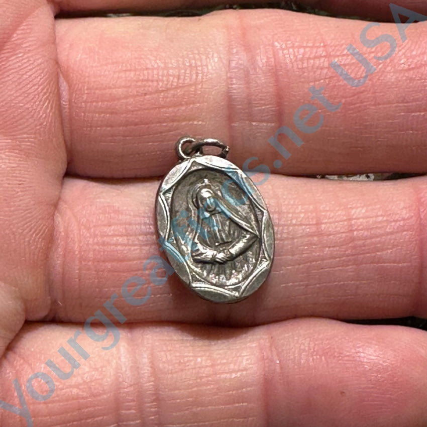 Vintage Sterling Silver Blessed Mother Jesus Devotional Pendant Charm