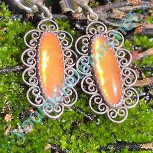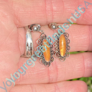 Vintage Sunstone Earrings in Sterling Silver FIligree
