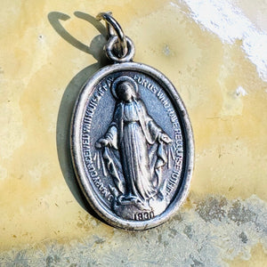 Vintage Time Worn Miraculous Mary Devotional Pendant